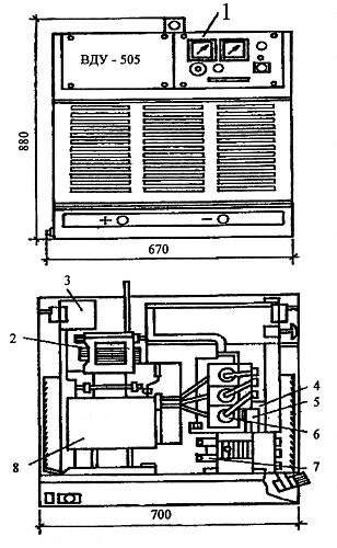 Выпрямитель ВДУ-505УЗ: 1-блок управления; 2-уравнительный реактор;