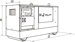 Габаритные размеры и уровни шума ДГУ Gesan с двигателями Cummins в шумозащитных кожухах