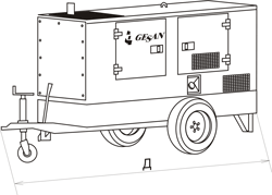 Габаритные размеры и уровни шума ДГУ Gesan с двигателями Perkins в мобильном исполнении